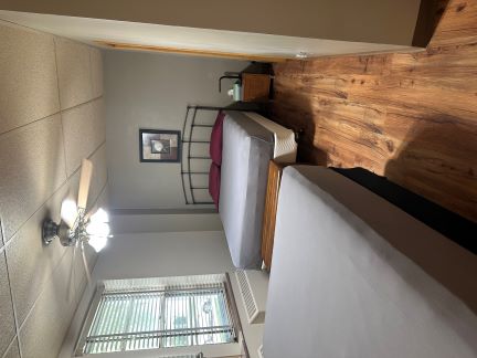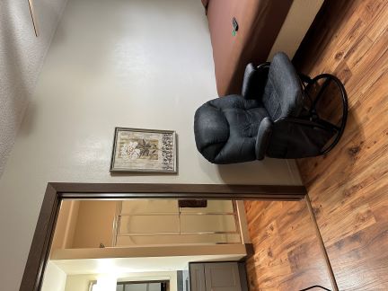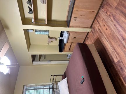Room number 20 - apartment suite, one Queen bed, pull-out couch, kitchen cabinets, counter top, sink, full size refridgerator, microwave, table and chairs, in suite bathroom. $115.00