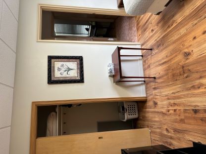 Room 11 - Apartment suite, kitchen cabinets, counter with sink, full size refridgerator, microwave, table and chairs, pull-out couch, 2 Queen beds, in suite bathroom. $115.00