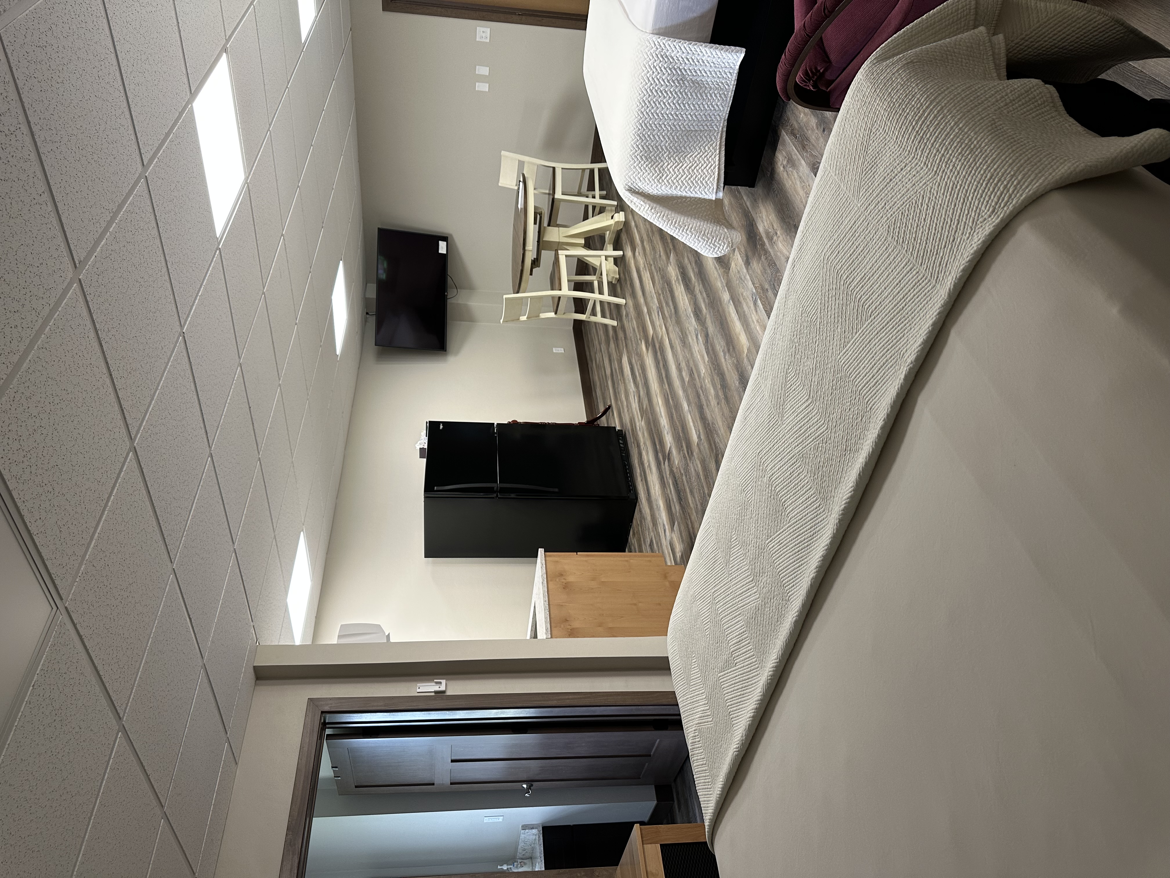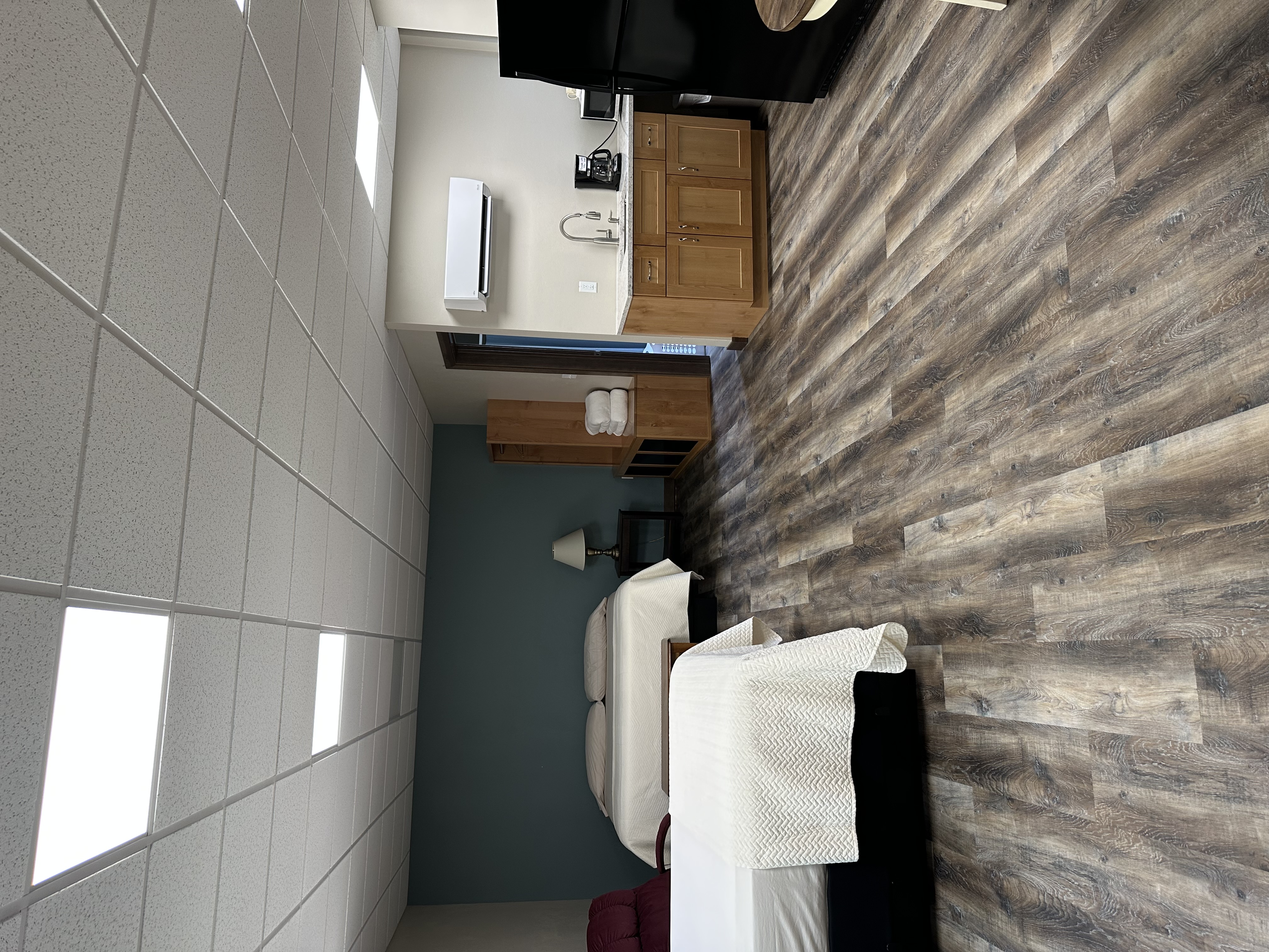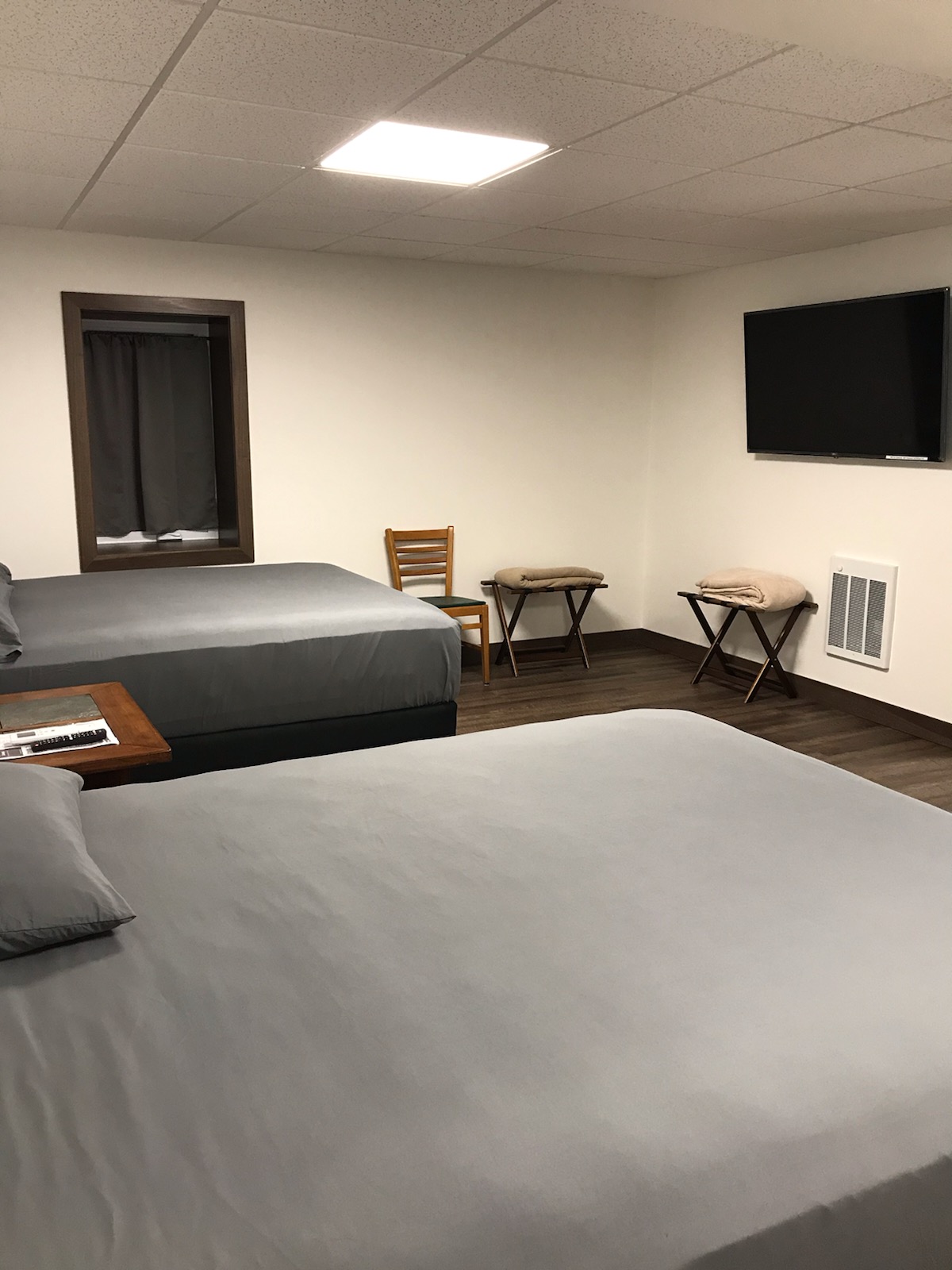 Room numbers 1, 2, 3, and 4 have 2 Queen beds, mini-refridgerator, microwave, 50" plus TV, and in suite bathroom. $115.00